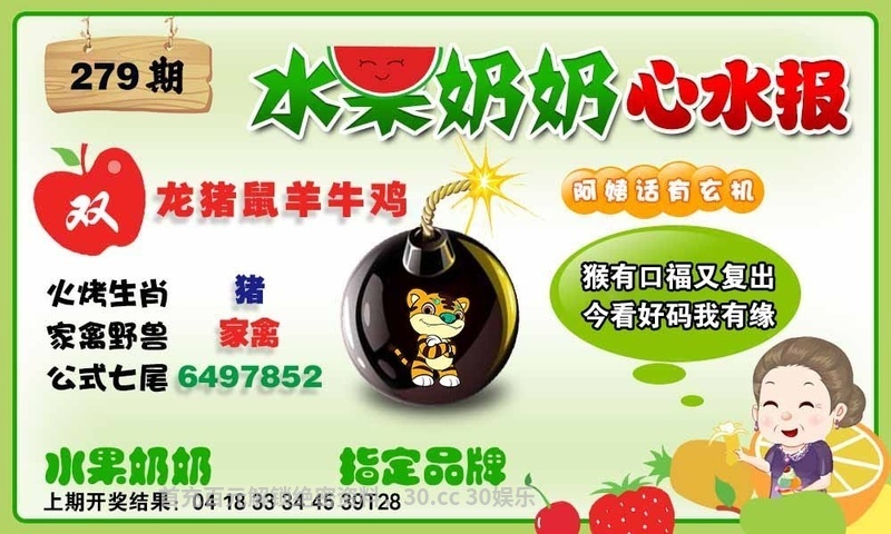 278期 | 狗 | 6尾 | 12合 | 虎28 |